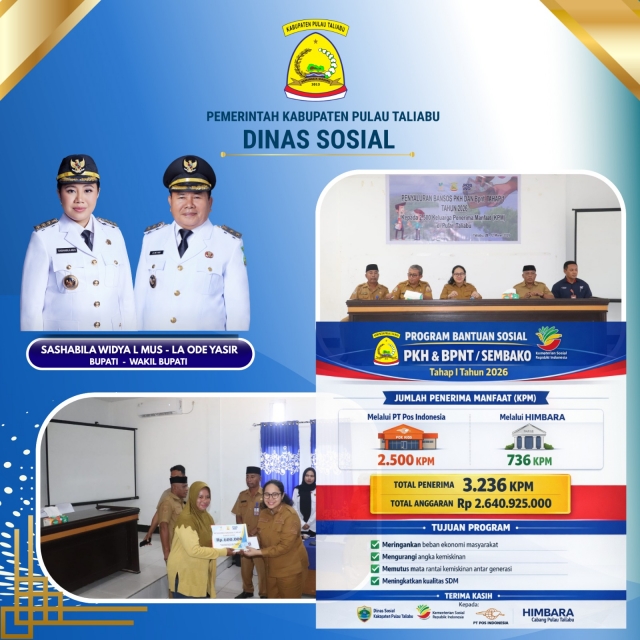 Assalamu Alaikum Wr. Wb,Selamat datang di Website Pemerintah Daerah Kabupaten Pulau Taliabu. Website ini sebagai sarana publikasi untuk memberikan Informasi dan gambaran kegiatan Pemerintah Daerah Kabupaten Pulau Taliabu dalam melaksanakan pelayanan.