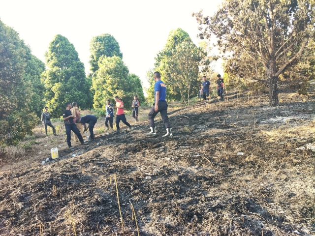 "Mengingat medan kebakaran berada di atas perbukitan yang tidak dapat dijangkau oleh armada mobil pemadam, kami melakukan penyisiran secara manual," ujar Kasat Kifli.